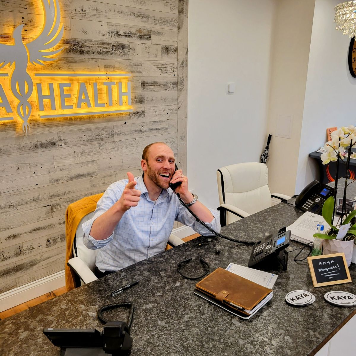 At KAYA HEALTH, we really try to practice what we preach. A couple of times a year Dr. Anderson will shut down the office and send everyone else on paid outing together while he covers alllll the phones!